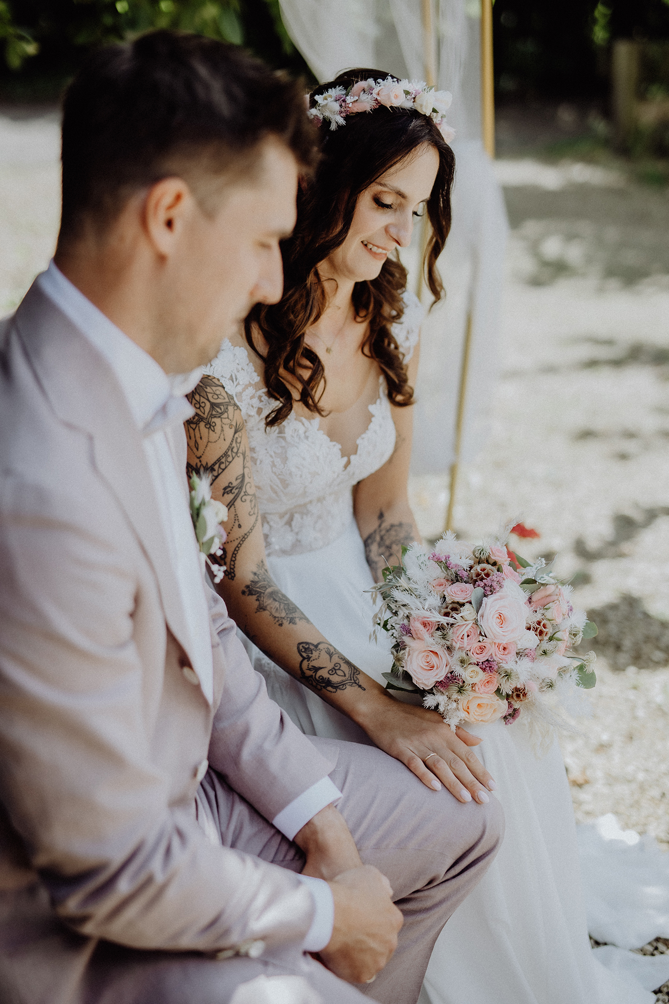 Die freie Trauung war sehr emotional, ehrlich und nah. Und auch die Gestaltung des Tages – bis ins kleinste Detail – war so liebevoll und stimmig: von der Deko bis zum Timing fühlte sich alles wie ein großes, entspanntes Zusammensein mit Herzensmenschen an.